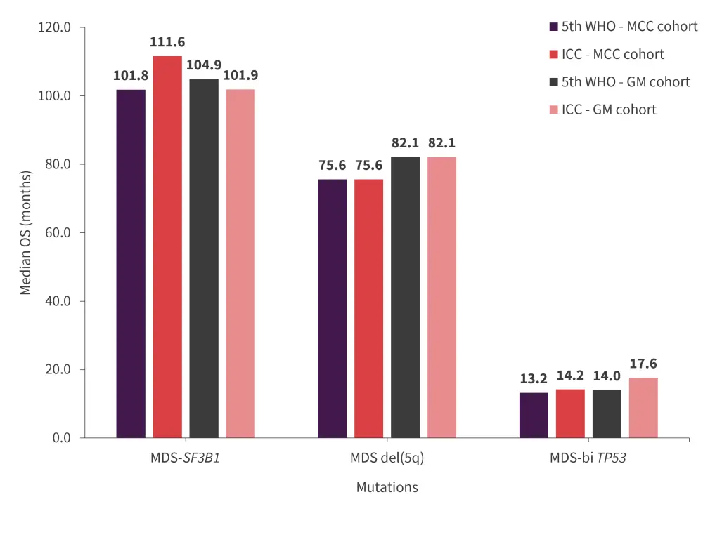 GM, GenoMed4all; ICC, International Consensus Classification; MDS, myelodysplastic syndrome; MCC, Moffitt Cancer Center; OS, overall survival; WHO, World Health Organization.