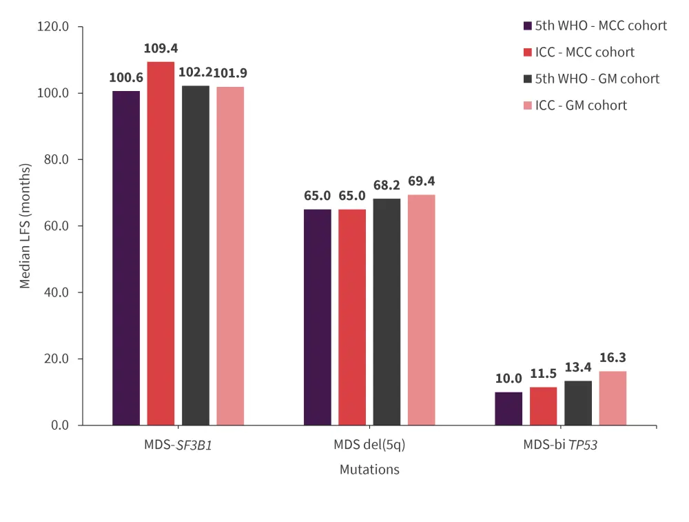 GM, GenoMed4all; ICC, International Consensus Classification; MDS, myelodysplastic syndrome; MCC, Moffitt Cancer Center; LFS, leukemia-free survival; WHO, World Health Organization.