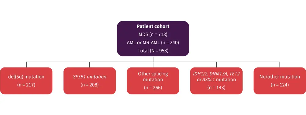 The cohort study presented by Haferlach included 958 patients with MDS, AML myelodysplasia-related, and AML according to the 5th WHO classification (Figure 6).