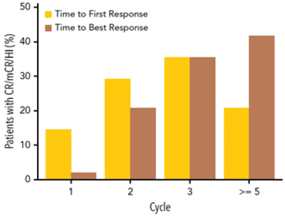 Figure 1. Time to first response and time to best response by cycle (N = 80) (adapted from Garcia-Manero et al.1)